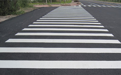 4、施划标线:用划线机进行施工,施划的厚度一般为1.5mm-1.8mm,然后自然固化,再用斧头或者铲子进行修整,撒布玻璃微珠,完成施工。